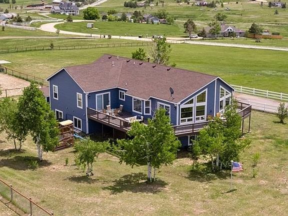 Looking to trade in the hustle & bustle of city living for something more peaceful- you found it! This fully updated 3264 square foot home is move-in ready. Enjoy vaulted ceilings and an open concept as you enter. The living room offers stunning Pikes Peak views, a custom gas fireplace and walks out to the wrap around deck for outdoor living. Tinted windows keep it cool on those sunny days. Transition seamlessly to the dining room and kitchen with recently refinished hardwood floors and stainless steel appliances. The kitchen dazzles with a farmhouse sink, tile backsplash, and butcher block countertops. The main floor primary bedroom features direct deck access and a spa-like ensuite bathroom, with dual vanities and a free-standing tub. Downstairs, a spacious family room awaits movie or game nights on new LVP flooring. Three additional bedrooms and a full bathroom complete the lower level. The 828 square foot garage accommodates three cars with room for a workshop or storage. Outside for your four-legged friends, vinyl and 2x4 horse fencing, two expansive pastures, and a barn with two Priefert stalls, a tack room and ample storage space awaits. Plus, a convenient frost-free hydrant ensures easy access to water. No HOA. Only 5 minutes to Monument, 15 to Colorado Springs and a beautiful 35 min commute to South Denver. Don't miss out on this dream home!