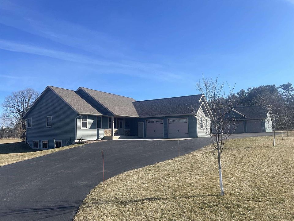 CHECK ALL YOUR BOXES WITH THIS ONE...Come see this beautiful open concept 4 bedroom, 3 bath home with vaulted ceilings and split floor plan. Kitchen comes with all appliances, hickory cabinets, pantry and an island for extra storage. Primary bedroom with coffered ceiling has a primary bath and walk in closet. Living room has a wall mounted electric fireplace. The lower level is partially finished with a 4th bedroom, family room and a 3rd full bath. Water softener is owned. Main floor utility room as you enter from the garage. The attached garage is insulated and heated with a polyaspartic floor. The detached 3 car garage has room for a workshop and any toys plus additional storage space on the 2nd floor. It also has electrical and a concrete pad to plug in and store a camper. Outdoors you'll find a relaxing patio area for watching the sunset, having a glass of wine or your favorite beverage or entertaining guests.,This home sits on 2.114 acres at the end of a cul de sac and is located in a rural subdivision with blacktopped roads just a few minutes from Marshfield in the Marshfield School District. Reach out for your personal showing!