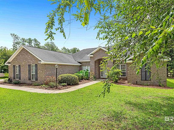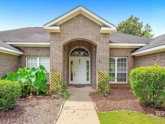 Spacious 4-bedroom + office, 3-bathroom brick home, situated on the largest lot in the neighborhood, approximately 2.4 acres. Nestled on a peaceful cul-de-sac, this home offers over 2,200 square feet of living space. The split bedroom plan ensures privacy and convenience for families and guests, featuring stylish vinyl plank flooring and ceramic tile throughout. The heart of the home is the spacious kitchen, complete with a breakfast bar, a cozy breakfast nook, and a separate formal dining room perfect for special gatherings. The primary bedroom boasts a tray ceiling and crown molding, with an en-suite bathroom that includes a soaking garden tub, separate shower, double vanities, a water closet, and two spacious closets. Outside, enjoy the 300 sq ft screened-in porch with tile flooring, overlooking the fenced backyard. The property is equipped with an irrigation system to maintain the lush landscape. The attached side-entry double garage, complemented by an extended concrete driveway, is ideal for additional vehicles. Conveniently located to Fairhope/ Daphne area and the Gulf of Mexico. Buyer to verify all information during due diligence.