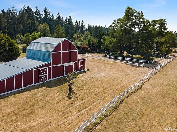 An Exceptional Countryside Estate exuding charm galore on 6 level acres in highly sought after Poulsbo. A one-of-a kind setting & Equestrian inspired w/meandering driveway to main home featuring many beautiful renovations. Spacious 3 bdrms, Den (optn'l 4th bdrm), great rm, formal dining, wrap around porch & lush gardens. Complete w/old world character, remodeled kit, baths + plumbing, elctr'l & roof. Lovely Mstr, 4 equestrian crossed-fncd pastures, 4 stall barn, loafing sheds, workshop & more!