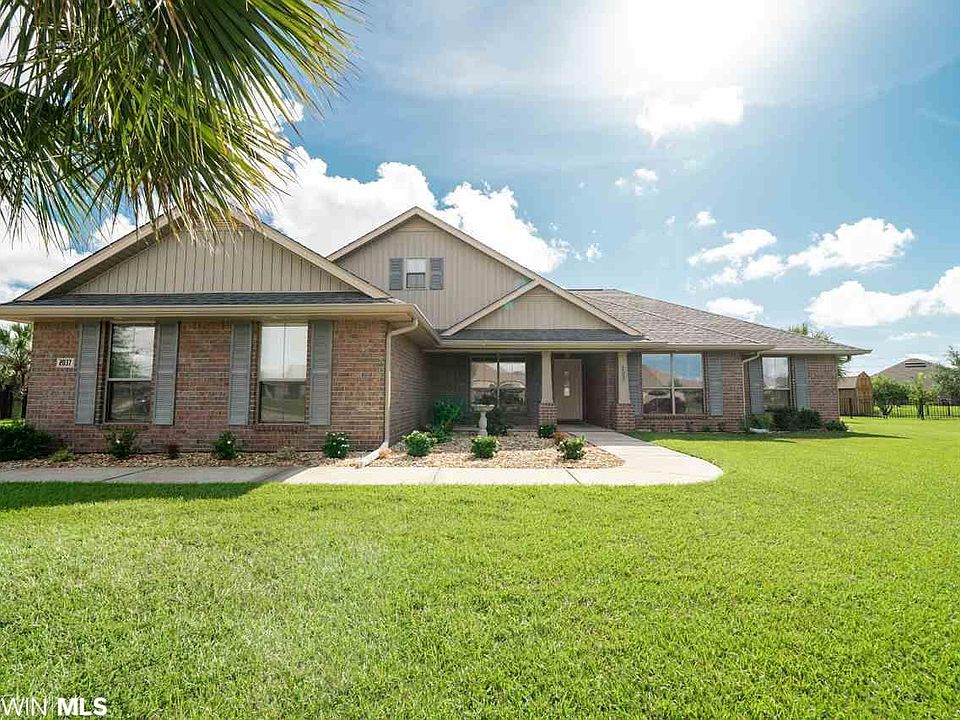 Beautiful home in the highly sought after Parish Lakes community! Situated on a large lake front lot, the home features a fenced back yard, gorgeous landscaping, covered front and rear patios, a large 14x20 detached work shop with a covered porch, storm shutters, double car side entry garage, freshly painted walls, large 18 tile flooring, double vanity and large walk-in shower in the master bath, two walk-in closets in the master bedroom, tray ceilings in the master bedroom, vaulted ceilings in the living area, and a a large bonus room/study. For those that enjoy fishing, the lake is just steps outside of the backdoor and is full of large mouth bass. Several 12+ pound bass have reportedly been caught from its banks! Parish Lakes is conveniently located only minutes from the Tanger Outlets, OWA, Lowe's/Home Depot, Academy, and many other shopping, dining, and entertainment attractions. Traveling North to I10 or South the the beaches is a breeze with easy access to Hwy 59 and The Foley Beach Express.