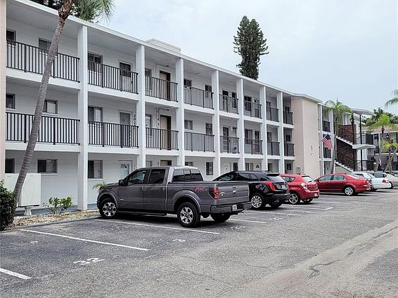 Furnished 2 Bedroom, 1 Bathroom on the Top Floor in a Wonderful 55+ Community. Lanai with Private View, Updated Tub/Shower, Stack Washer & Dryer in Utility Closet, Close to the Elevator and Assigned Parking near Elevator too, Heated Pool Across the Street, Close to Shopping, Bus Lines & Doctors. Low Monthly Condo Fee. Furnished Less Personal Items & Wall Hangings