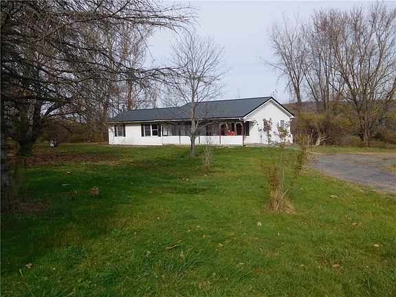 Solid infrastructure in need of TLC. 3 bedroom, 2 full bath ranch style home on 3 acres with beautiful pond. Potential to be a duplex with second kitchen. Left side of the home was built as handicapped accessible(1985 standards) with 1 bed, 1 bath, living room and kitchen - could be primary suite. Right side has 2 bed, 1 bath, living room and kitchen. Plenty of space to move laundry upstairs for one level living. Being sold in "as is/where is" condition. Located minutes to Ithaca College and Downtown Ithaca.