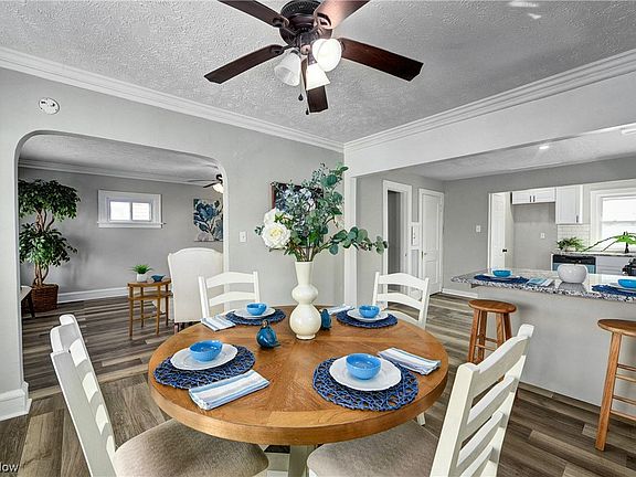 Welcome Home to this recently updated colonial in a desirable neighborhood Cleveland Heights! Updated to open kitchen into dining room, new cabinets, stainless steel appliances, granite counter tops with breakfast bar, brand new luxury vinyl plank flooring downstairs and new carpet upstairs. Convenient half bath downstairs and remodeled full bathroom upstairs. Second floor bonus room can be used as an office, den, or play area. Finished third floor can be used as a large fourth bedroom. Brand new furnace, new front porch. Spacious 2 car garage. Freshly painted inside and out. Walking distance to Cain Park, playgrounds, shopping, pool and eating. Seller offering 1 year home warranty.