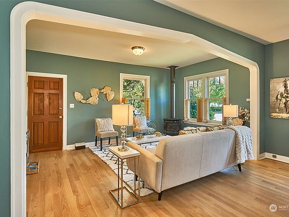 Perfectly charming home just blocks from downtown Enumclaw. Long time owner has made major improvements including a brand new roof, all new hardwoods, updated kitchen with new microwave, updated plumbing and electrical, updated insulation with sheetrock and Anderson double pane windows. Beautiful original millwork restored and spacious living room with gas fireplace. Recently completed second story 3rd bedroom loft. Large corner lot with detached garage with shop space with dedicated 100amp box which includes 220service.