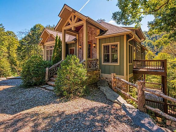 Great Custom Mountain Home with Pond Frontage, located in the Informal gated community of Sims Valley, Near Lake Glenville! The Home Features Hardwood flooring throughout the whole home, spacious main level living room with stacked stone wood burning fireplace, and abundance of windows for added natural lighting. Master is on the main with en suite and sitting deck over looking the pond. There is a great covered deck off the main level of the home that is screened in and features its own stacked stone wood burning fireplace to enjoy the sounds Betsy's Branch as it flows into the pond. The lower level features another living room with 2 Guest Bedrooms and 2 Full Baths. Another spacious deck is located off lower level of house for guests. Sims Valley offers a Great Clubhouse for gatherings and parties along with a swimming pool for everyone to enjoy, There is also a nice common area for having picnics, that features the old Sims Family Cabin.