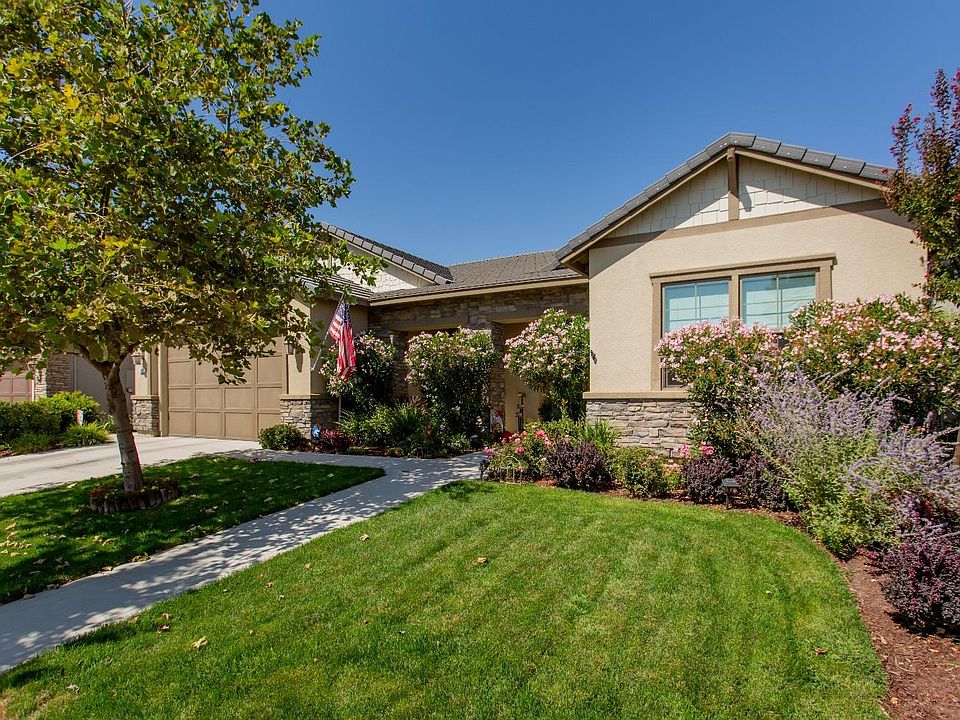 Welcome to Regal Court, a beautiful new home community located in the desirable Northeast Turlock. This stunning home was built in 2019 by Fitzpatrick Homes and features a spacious layout with 2,674 square feet of living space, 4 bedrooms, 3 full bathrooms, and is completely wheelchair accessible. The home also features a lovely study with glass French doors and 9ft oversized garage doors. The floor plan boasts an open concept living room with a beautiful coffered ceiling and fireplace, and a gourmet kitchen with a large island and plenty of cabinet space. The primary bedroom is a show stopper; the suite includes a spacious bedroom, a vanity (glam) room, two large walk-in closets, and a double vanity bathroom with a custom barn door. The backyard is a gardener's paradise, with a large California patio for entertaining and an impressive outdoor fireplace. This home is truly a must-see, with too many upgrades to mention!