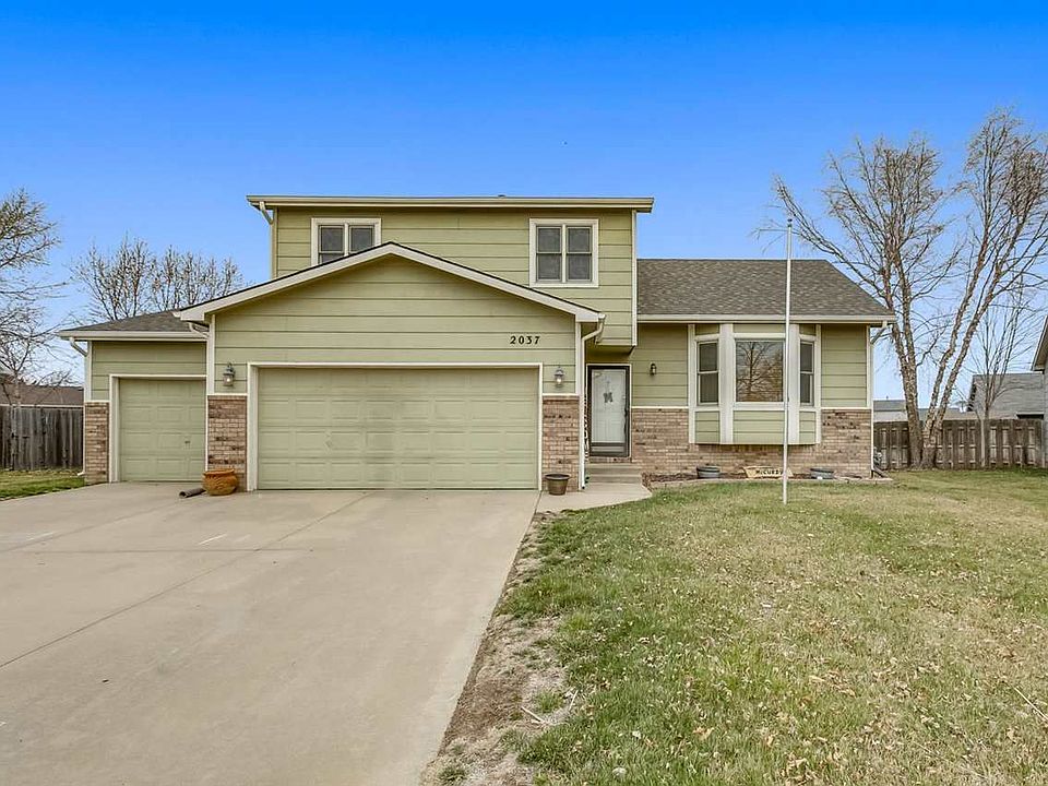 Multi level home. Located in desirable West Wichita neighborhood. Goddard schools. Clean and move in ready. Vinyl and wood laminate flooring. 3 bedrooms, 3.5 baths, possible 4th in the basement. Formal living room with bay out. Family room has brick fireplace and built in cabinets for storage. Spacious kitchen with pantry, eating bar and dining area. Main floor laundry. Upper level features 2 bedrooms, bath and spacious master bedroom, bath and walk in closet. Neutral decor. Finished basement has possible 4th bedroom with daylight window or can be family/rec room. Additional finished room for hobbies or TV room. Large storage area and bath. New roof in 2019. Large 3 car garage. Sprinkler system, wood fence, shed, large yard and patio.