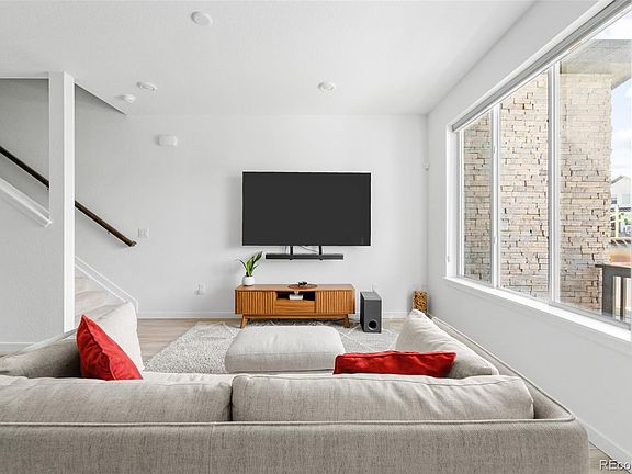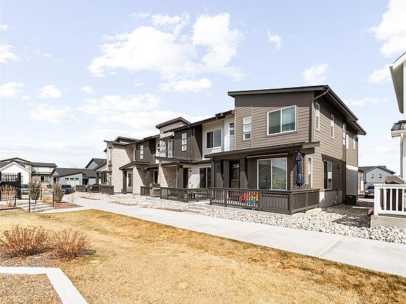Stunning skyline views unfold from this newer construction townhome tucked in Green Gables. A sprawling front patio presents the perfect setting for enjoying outdoor relaxation. Enter into the main level showcasing an open-concept layout w/ modern features throughout. Vinyl flooring flows easily underfoot, from a spacious living area to a stylish kitchen featuring granite countertops and stainless steel appliances. Retreat upstairs to a primary suite boasting a walk-in closet and a serene bath. A secondary bedroom offers mountain views and high-speed ethernet internet, offering an ideal home office space. The upper level is complete w/ a second full bath and a laundry room. Ample storage is found in a one-car oversized garage w/ shelving. Upgrades include home automation and energy-efficient technology w/ whole-home Wi-Fi, a Ring alarm security kit, Ring Doorbell Pro, smart lock, thermostat and garage control. Conveniently located, this home offers easy access to Lakewood amenities.