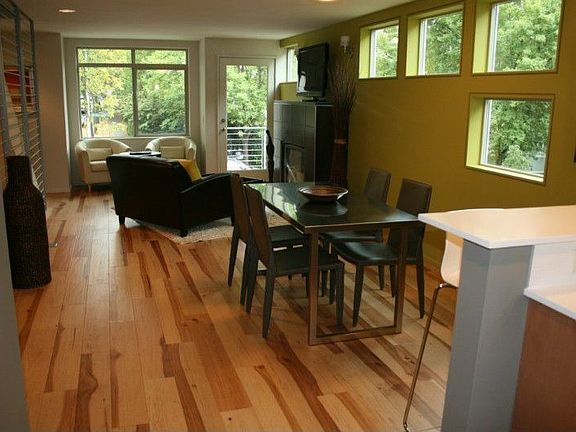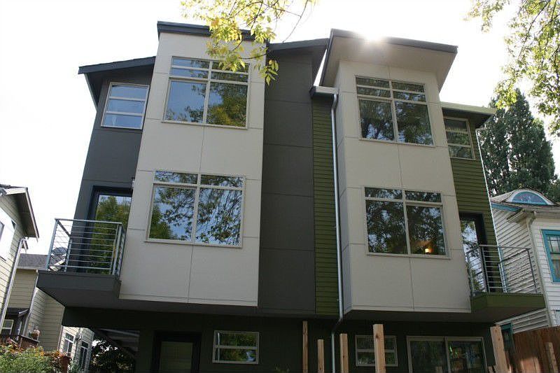 In-city living at it's best! Stunning modern design on a dead end street. All four homes have an open, light-filled floor plan that feel very spacious. Features include concrete floors in the entry way, beautiful hardwoods on the main floor, & plush carpet throughout the upstairs bedrooms. Both rooms have a full bath & feel very large. Kitchen has SS appliances & a breakfast bar with cesarstone counters. Living room comes with a fireplace & a deck for your outdoor enjoyment. No Home Owner Dues!