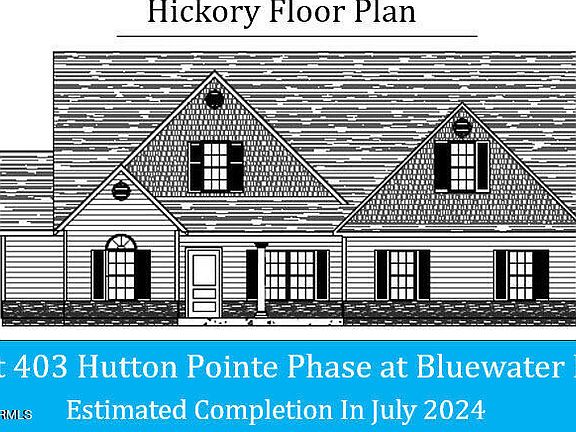 The ''Hickory'' floor plan is under construction in Bluewater Rise. Corner lot w/ side entry garage! Builder offering $10,000 buyer's closing incentive w/ use of preferred closing attorney. Features 3 Bedrooms / 3 Baths w/ most of your square footage on the 1st floor. An additional bonus room upstairs with it's own full bath and closet can be a 4th bedroom. Great Room with vaulted ceiling and gas fireplace. Master Bedroom has tray ceiling. Other features include an eat in kitchen w/ granite counter tops plus a formal dining room. Convenient commute to both MCAS Cherry Point & downtown New Bern.