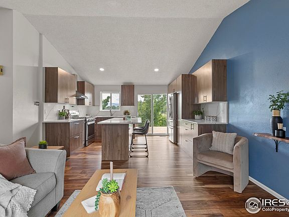This recently renovated home is sure to please with its gourmet kitchen complete with new contemporary cabinets, quartz counters, stainless steel appliances and acacia wood flooring. From this amazing kitchen, you can step out onto the newly built deck which overlooks the large, professionally landscaped back yard and from where you can enjoy the views of the front range. 2 bedrooms and an updated full bath complete the main level. Downstairs, is a large family room, 3rd bedroom, laundry room and 3/4 bath. From the walk-out level 3rd bedroom, you can access the backyard through a sliding glass door which brings natural light into the space. Walking distance to Garden Acres Park and close to McIntosh Lake, trails, shopping, restaurants and Lyons. NO HOA or METRO TAX! Want chickens? The existing shed makes a perfect chicken coop. The house backs to an open lot and large unincorporated Boulder County properties. The current owner installed a tankless hot water heater and new high-efficiency furnace and A/C for added energy efficiency. Please note: listed as 2-car because there isn't any way to denote both an oversized 1-car attached and 2-car off-street parking. The house has the ability to park 3 cars plus a small RV.
