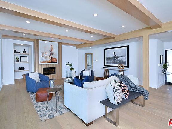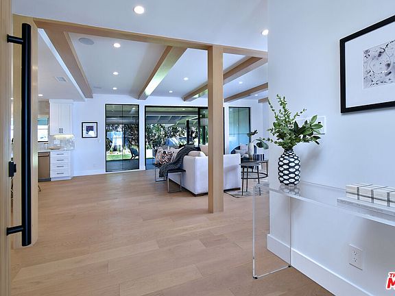 Newly renovated, this warm modern home is thoughtfully designed around a killer open kitchen, dining and family room. You'll love how the natural wood envelopes the sleek but cozy fireplace. Walls of sliding glass open to a large grassy backyard and incredible views of the ocean and canyon. Embrace the coveted California lifestyle with this ultimate outdoor living experience. Four bedrooms afford possibilities of an office or gym. The primary suite overlooks the backyard views. Quiet neighborhood with convenient location to Beverly Hills, Century City or the Valley. Around the corner from Roscomare Elementary school.