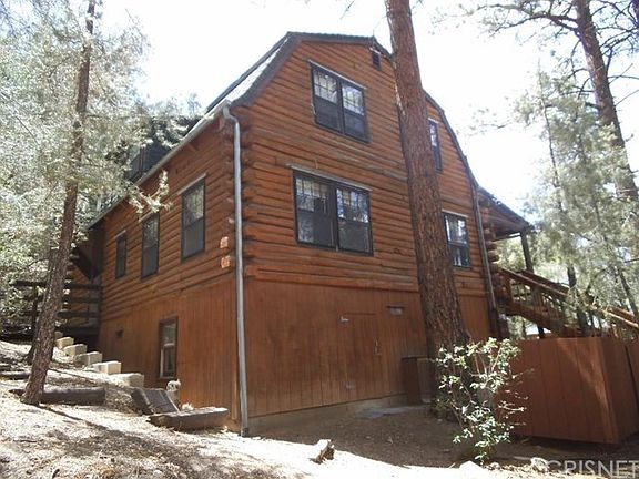 Traditional log home nestled in the tall pines. Nicely maintained. Wraparound deck to enjoy the sun in the back & the shade under the covered front porch. Plenty of large windows in every room. Living room features a stone fireplace with hearth. 1/2 guest bath perfectly located between the living room and kitchen. Large open dining room & kitchen space featuring a large walk-in pantry, lots of counter space & cabinets & a butcher block island. Center staircase with natural pinewood railings lead upstairs to a full size bath w/tub & shower. There are also 2 large bedrooms with room for multiple twin or bunk beds-perfect for kids or guests. Large bonus room downstairs that an be accessed via a small staircase in the corner of the living room or from the outside. Bonus room has a washer/dryer hook-up & plenty of space for a playroom, arts/crafts, etc. and storage. Detached garage with workbench. Paved driveway. Newer entry stairway, roof, furnace & kitchen appliances. Don't miss this one!