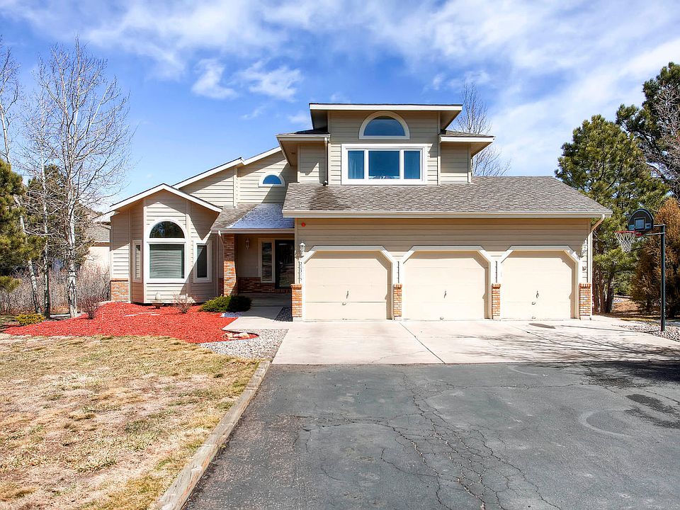 Meticulously maintained 2-story in desirable Woodmoor with a large 0.62 acre corner lot with almost 3,800 square feet, 5 bedrooms, an attached 3 car garage and views of Bald Mountain and Pikes Peak. Fantastic location on the northside of Woodmoor in a very quiet part of the community with very little traffic. Great access to I-25, Highway 83, Highway 108 and the amenities of Monument and Palmer Lake. Nearby access to Pike National Forest. Easy commute to Denver or Colorado Springs. Welcoming entry with hardwood floors and and soaring vaulted ceiling. Formal living room with large bay window, vaulted ceilings and open to the formal dining room. The formal dining has hardwood floors and tons of space for a large dining room table. Remodeled kitchen perfect for entertaining and cooking with tons of cabinetry, crown molding, a pantry, island, stainless steel appliances, double oven, recessed lighting and slab granite counters. Main level family room with hardwood floors, wainscoting, gas fireplace w/ brick surround and a walk-out to the back covered deck. Expansive master retreat with vaulted ceilings, a walk-in closet, gas fireplace and private 5-piece bath. The master bath has been updated and includes a double vanity, separate shower and jetted soaking tub. Fully finished garden level basement with tons of natural light, a family room/game room, 2 additional bedrooms and a bath with double vanity. Fantastic outdoor entertaining space on the covered back deck which has been freshly stained. Fully fenced dog yard. Beautiful landscaping with lilac bushes, mature trees, flowers, automatic sprinkler system, stone retaining wall and green grass. Award winning School District 38.