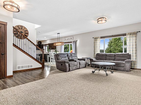 Welcome to Prairie Meadows Subdivision! This beautiful home offers an 18x18 maintenance-free deck overlooking a large, privacy-fenced backyard with no houses behind. Inside, enjoy fully updated bathrooms with tile showers, quartz countertops throughout (with marble in the basement bath), and a spacious primary suite. The kitchen features a walk-in pantry, center island, and Whirlpool stainless steel appliances, including a brand-new fridge and dishwasher. Fresh new carpet adds comfort throughout. Additional highlights include a heated 3-car garage and a desirable layout with 3 bedrooms plus laundry on the upper level. Move-in ready and located close to parks, schools, and major highways!