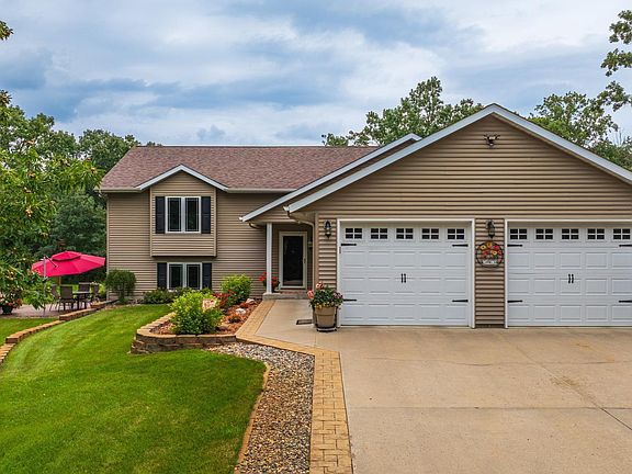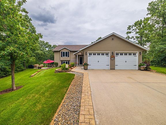 This stunning 4-bedroom, 4-bathroom home offers over 2,900 square feet of beautifully finished living space across two levels. Thoughtfully designed with high-end touches throughout, the home features a custom kitchen with granite countertops, updated flooring, vaulted ceilings, a cozy main-level fireplace, and elegant built-ins. Step outside to a spacious deck with an awning—perfect for relaxing or entertaining guests. The fully finished walk-out lower level opens to a patio designed for grilling, all surrounded by professionally landscaped grounds. Additional highlights include maintenance-free siding, a paved driveway, an attached two-car garage, and a 36x56 outbuilding with a heated workshop—ideal for hobbies or extra storage. Set on 15.17 acres of serene privacy with a beautiful mix of mature trees, this property offers a rare combination of comfort, space, and natural beauty. Conveniently located just minutes from Lake Belle Taine, Boulder Lake, and the Heartland Trail.