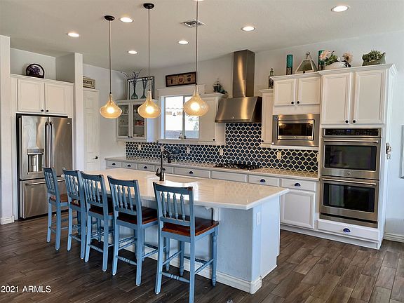 A MUST SEE HOME in Queen Creek! This beautiful 5 bedroom, 3.5 bath, 3 car split garage home has it all! Well appointed at 3995 sq ft. Interior features include: Owner suite and one large den on first floor, white on white cabinets/counters with beautiful backsplash in a spacious kitchen, dual ovens, gas range, walk in pantry, wood look tile, brand new carpet upstairs, 2 additional large den/game/flex rooms with double doors (1 up,1 down), big loft, new owned solar, the list goes on and on! Exterior Features Include: An enormous 16,913 sq ft lot, fenced pool with shade features, massive grassy play area, double RV gate with lots of parking space behind, etc. This location, lot size and home floor plan is just fantastic! Schedule a showing today!