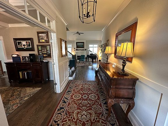 This beautiful all brick 4,059 sf home with wonderful touches throughout. Welcoming front porch. The Great Room and Keeping Room both have gas fireplaces and vaulted ceilings. Chef's kitchen with stainless appliances, Quartz, ample cabinet space, large pantry and bright eat-in area with shiplap. A large laundry room that can accommodate a 2nd refrigerator, A MUST. Two bedrooms down-two bedrooms up. 4 full baths. Ensuite baths up. Kids homework area at top of stairs. Huge bonus! Hardwoods down including in master suite with tray ceiling and shiplap down. A beautiful home office down with coffered ceiling and French doors for privacy. Beautiful trim and detailing throughout! Covered back porch with room for hot tub! Room for a pool!