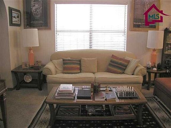 Charming southwestern style town home with 2 bedrooms, 2 baths, 2 car garage, one covered carport, and over 1149 square feet of living space. Located on large corner lot, easy care landscaping, mature trees, RV access. Very, very nice! New roof, parapets, new paint inside and out, kiva fireplace, high ceilings, clerestory windows, two outdoor patios. Refrigerated air, electric heat pump, security windows and doors. Refrigerator stays. . . You must come by to appreciate it.