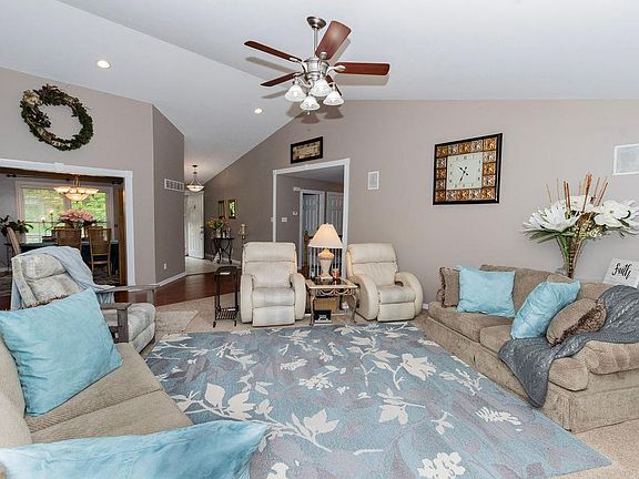 Fantastic indoor & outdoor space in this custom ranch on almost 1 acre! Perfect for entertaining & family gatherings. Beautifully landscaped yard, inground sprinkler system, 2 car garage & 3 car 30'x30'' detached garage, covered patio & multiple decks! 4 bdrms, 3.5 baths, open floor plan w/spacious rooms & vaulted ceilings. Great room has gas fireplace & vaulted ceilings. In the kitchen, 42" honey maple cabinets, granite coutertops, ceramic backsplash, open to the hearth room w/another gas fireplace & french doors leading to one of the decks. Master suite w/ luxury bath, a whirlpool tub, double sink vanity & separate shower. The finished LL gives you even more living & entertaining space w/ large family room/rec area, wet bar, walk-out to large covered patio & backyard, 4th bedroom & full bath. Could easily be an in-laws quarters or living area for college kid. Many updates in this home including new roof 6/19, countertops, flooring, appliances, french doors & garage door openers.