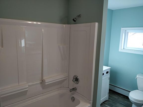 Fully Remodeled Bathroom, and new paint in a few rooms, Window Air Conditioners in each bedroom. 3 Large bedrooms, a dining room, Large living room, kitchen, and a brand new full bath. Owner Pays for Water, Sewer, and trash pickup. Renter pays for electric, and heating oil. Pet fees may apply No Smoking 1 car detached garage and 2 off street parking spaces.