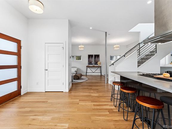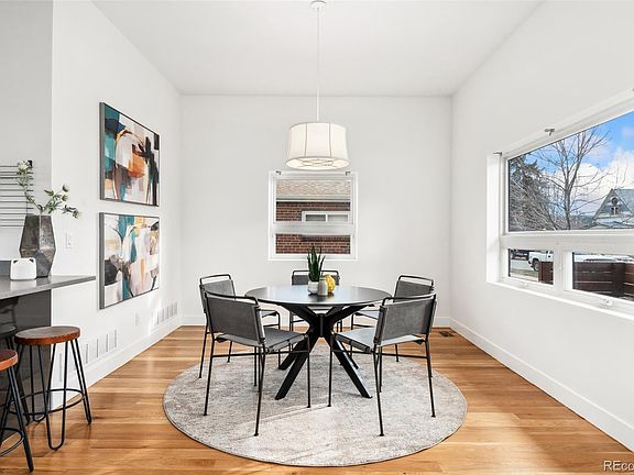 Located in one of Denver’s most desirable neighborhoods, this exceptional property blends contemporary design with high-end finishes, offering both elegance and functionality. The inviting front porch welcomes you into a bright, open floor plan with soaring ceilings and gorgeous wood flooring. The spacious living room provides a cozy retreat, while the dining area—surrounded by large windows—floods with natural light and seamlessly flows into the gourmet kitchen.