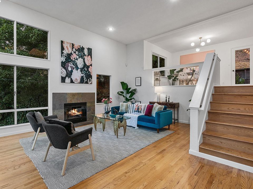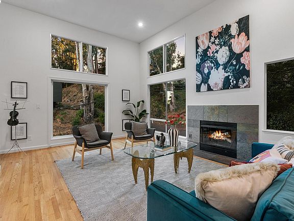 Beautifully and thoughtfully remodeled 3BD/2.5BA Oakmore home with modern interior and ample room to live and play. Tucked among the trees, this 2237 SQ FT contemporary at 2038 Melvin Road offers privacy in the close-knit Oakmore neighborhood with its wonderful amenities. Built in 1992, the gracious floor plan begins with a foyer leading into the modern great room with dramatic soaring ceilings, cozy fireplace, and walls of windows with verdant views. Gorgeous wood floors span to an airy dining room opening onto a spacious deck with built-in seating and play areas, patios, and mature landscaping. Back inside, the recently remodeled kitchen adjoins a large and bright family room with French doors leading to a front deck. A powder room and laundry area complete the ease of the main floor. The top floor boasts a wonderful primary suite with a walk-in closet and built-in storage, split en-suite bath, and city views. Down the hall, two sunny bedrooms have large closets with built-in storage and share a full bath. The two car garage has a convenient interior stairwell, and an EV charger port. Close to Highway 13 and top-rated schools. Spend your weekends exploring Dimond and Joaquin Miller Parks, the restaurants of Park Boulevard, and shopping in Montclair Village.