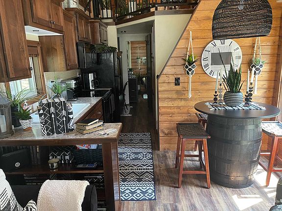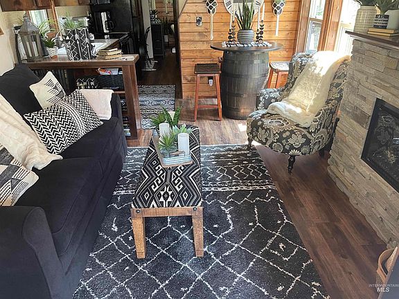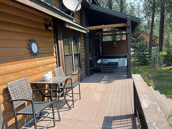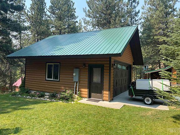 This is a unique property designed for a get-a-way mountain retreat. It is a 2016 Nashua mobile home (new in 2016) with a log siding structure built above and around it including a covered deck with a hot tub. There is a very nice loft area with a sleeping area.There are two storage sheds and two additional buildings with bunkbeds. One building has a bathroom. A beautiful fire pit and solidly built gazebo are situated in the grassy yard surrounded by trees. There is a detached two car garage and RV parking with a 30A service and access to the septic. the Southfork Boise is a five minute walk. All recreational opportunities right off this property including snowmobiling, hiking, fishing, hunting (area 43) and more. Roads to Atlanta, Rocky Bar, Baumgartner Hot Springs and Trinity Lakes are all close. Comfortable and efficient best describes this property.