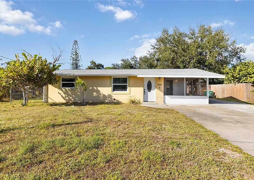 Welcome to this perfectly situated Southwest Florida home, located in the desirable community of Grove City in Englewood. This charming and move-in ready 2-bedroom, 1-bath residence features a freshly painted interior and a bright, open floor plan. Step inside and you are greeted by a welcoming living area filled with natural light. To the left, you’ll find two generously sized bedrooms—both large enough for a king-size bed with plenty of room for additional furniture. The kitchen offers ample storage and provides convenient access to the backyard as well as the screened, tiled front porch, where you’ll also find a separate laundry room with extra storage. Enjoy true peace of mind with impact windows installed in 2024, a new roof in 2023, A/C in 2022, and a new hot water heater in 2022. Hurricane shutters for the home are also included and are stored in the backyard shed. Sitting on an oversized lot, this property is perfect for boaters and outdoor enthusiasts. There is abundant space for parking and storing your boat, RV, and all your Florida toys. The fully fenced backyard offers plenty of room for a pool, and the deep storage shed is ideal for kayaks, paddleboards, and more. The possibilities are endless—perfect as a first home, seasonal retreat, full-time residence, or income-producing investment. Charlotte County allows both short- and long-term rentals. Enjoy the wide array of amenities this vibrant coastal area presents. A community boat ramp is available just blocks away for a small fee, with an additional public boat ramp nearby past Lemon Bay High School. Ann & Chuck Dever Regional Park is great for all ages, formerly known as Oyster Creek Regional Park, just a short bike ride distance with a heated, twenty-five yard competition pool with a shallow water play area, activity pool along with other amenities – dog park, playground, skate park and more or hope on the Oyster Creek Waterfront Trail that connects the Ann & Chuck Dever Regional Park with Cedar Point Environmental Park. Spend your days at nearby Boca Grande or Englewood beaches, shop along historic Dearborn Street, and savor the local dining scene. This Grove City gem is ready for its next chapter—schedule your showing today!