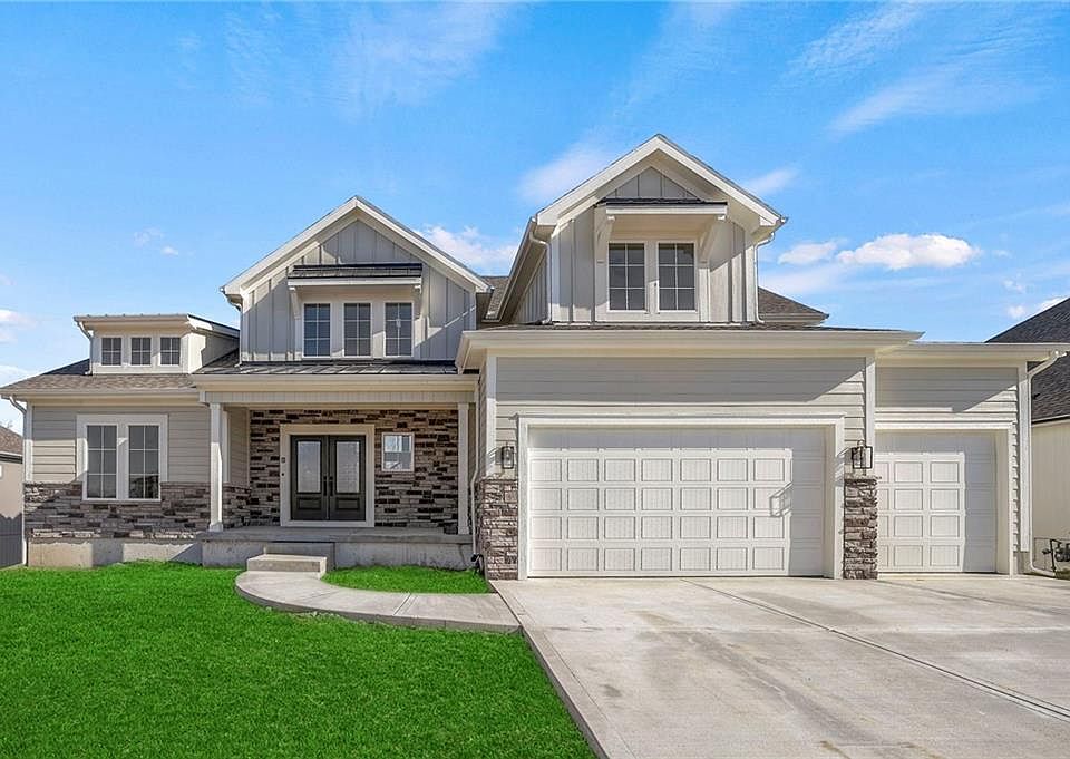 The stunning Sequoia Farmhouse by Aspen Home Builders features a 2 story wall of windows showcasing the magnificent greenspace located behind this home. A wide open floor plan with real oak hardwood floors, large kitchen island with air switch, stainless steel appliances and gas cook top. Located in the Retreat at Hook Farms, Hunt Midwest’s newest and fastest-growing Lee’s Summit community. 65+ acres of green space and community pool. Wooded walking trails, community garden coming soon. Lee’s Summit schools including Lee’s Summit West attendance area. Convenient location close to everything. *Taxes, room sizes are estimated.
