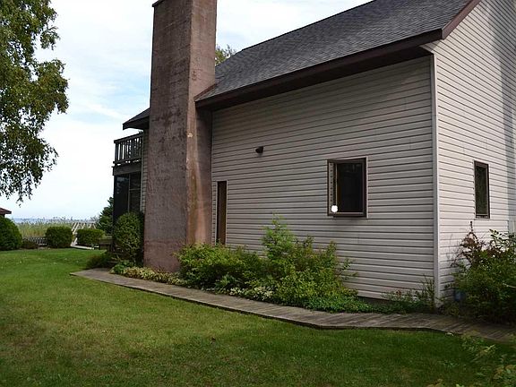 Semi-Secluded location within walking distance to the Sturgeon Point Light House, 100' of sandy beach frontage, 243' deep, nicely maintained grounds, concrete drive leads to a 2.5 car garage. This Beautiful beach front home has a wall of windows on the lakeside, Kitchen is located between the family room and living room, all white cabinetry, built in appliances, corian counter tops, breakfast bar, hardwood flooring thru-out the lower level, vaulted ceiling in living room and family room, Newly remodeled bath room with over sized shower, 2 bedrooms down with the whole upper level as the master suite (21x23) which includes a sitting area, full bath with jet tub, separate shower, double sinks, walk-in closet, double sliding doors lead to an outside balcony over looking Lake Huron, Screened-in porch off family room and also one out towards the lake, swing set and play area for the children or grand children. Very comfortable home, open floor plan, easy living on Lake Huron.