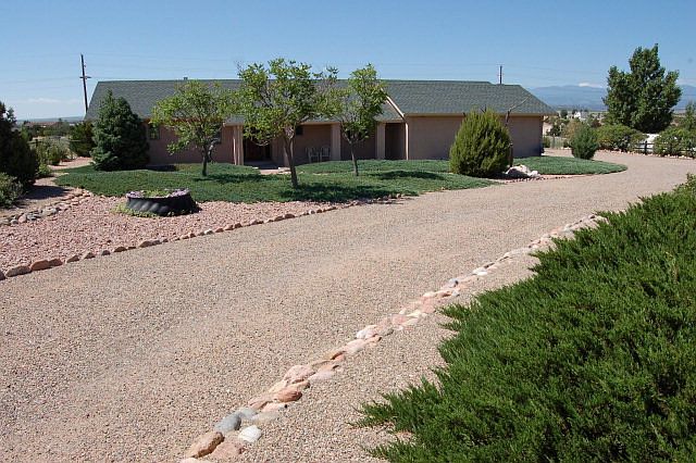 Have you been looking for the perfect green house? This is it! Passive solar design, with low utility bills and energy efficient concrete construction. Inside floor is a colored, stamped concrete, overhangs over windows, windows oriented to the south and with great mountain views! Electric wall unit stores heat in bricks during off peak, low cost hours, and can distribute it later when needed. This is thermostat controlled. Every room has electric heaters also thermostat controlled. Second source of heat is a natural gas powered fireplace in the living room, with a thermostat. Wonderful yard, just immaculately kept. Grass, shrubs and flowers in the courtyard out back, then natural setting with totally fenced yard, and lots of natural trees and shrubs. Front yard is a mecca for green low maintenance yard, with rock, berms, trees and shrubs. Covered front porch with Pikes Peak views, and large covered back patio plus open patio in a protected spot. Great views of the Wet Mountains. Oversize two car garage, with huge workshop area. Kitchen with all stainless appliances, eating space, plus large view dining room. Airlock entry, huge pantry, split bedrooms, office/den or exercise room. Vaulted ceiling in the living room, lots of ceiling fans to spread heat or cool as needed. Energy efficient home of the future available today! Electricity for hot water heater, lights and appliances, and heating units averages just $78.77/month. Plus a beautiful setting!