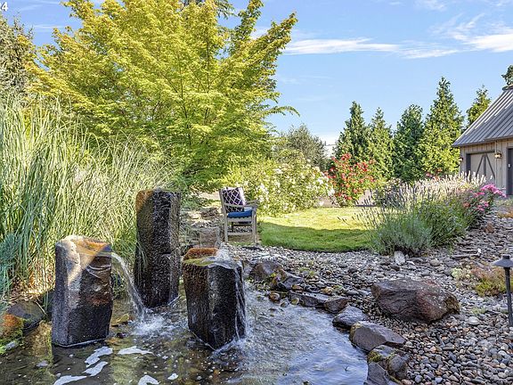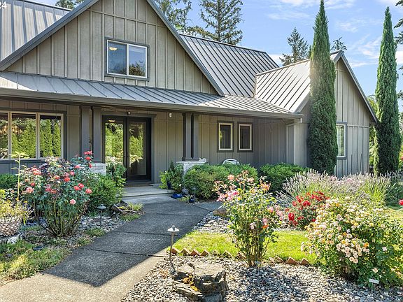 Luxury Country Acreage Estate Oregon City! Stunning 4008 sq ft home with a sprawling floor plan sitting on 2.20 lush landscaped acres, you will be impressed! The long private paved driveway welcomes you home, secured behind a beautiful entry gate. Some of the many treasures you will find at this home include a New Metal Roof in 2023, New Furnace & AC in 2022, New Hot Water Heater in 2023 & New Auto-start Gas Generec Generator for house installed 2022. The grand great room is so inviting with beautiful hardwood floors, high ceilings, built ins, gas fireplace and a wall of windows showcasing the beautiful patio and backyard. Entertainers kitchen features: hardwood floors, island, ss appliances, granite countertops, BI oven, BI microwave, 5 burner gas cooktop, refrigerator and outstanding storage space! The fabulous floor plan leads to easy entertaining inside or outside of this home! Primary suite in on main level and is dreamy, French doors lead out to a private patio near the updated Hot tub! Primary bathroom is elegant with spacious tile shower, claw foot soaker tub, double sinks and roomy walk in closet! Second bedroom located on main level with a near by full bathroom, excellent space for guests! Upstairs you will find privately located three additional spacious bedrooms & a bonus room, great for movie nights! The finished storage areas upstairs are spectacular, you need space, this is your next home! Outside....majestic landscaping to truly define the beauty and privacy you will enjoy at this luxury property. Outdoor covered kitchenette features: granite ct, bi-gas grill, 2 gas outdoor heaters, sink, beverage fridge, lights, wood burning outdoor fireplace. Four stunning outdoor water features, landscape lighting, sprinkler system, blueberry plants, & variety of mature trees on property. Large shop with 3 bay doors, half bathroom, kitchenette, cabinets, concrete floor, gas heater, 220 power and more! Stylish Victorian 12'x 14' green house. Fenced. Two Tool sheds.