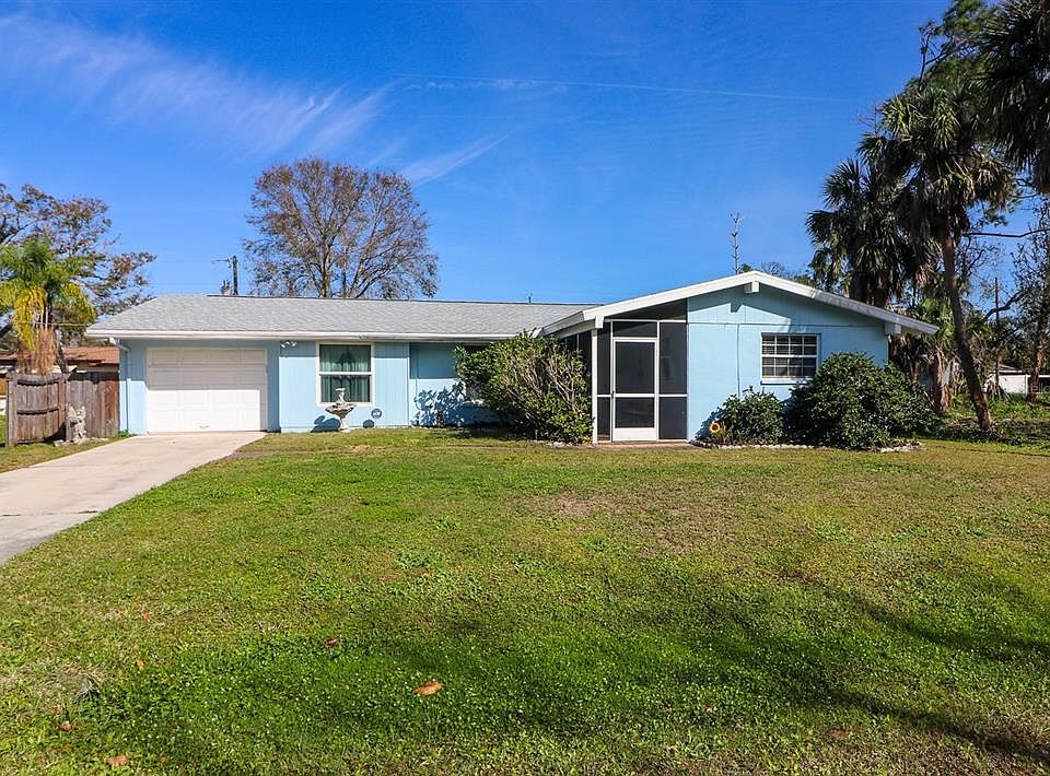 Looking for a 3/2 with a pool without breaking the bank? What if you could have that as well as peace of mind from impact windows, impact sliding door, new roof and lanai? If that wasn't enough, add to that 3 good sized bedrooms and closets with a primary that fits a king bed with room to spare! For your tools and toys, the one car garage has additional length for the laundry and includes an upright freezer. If you still need more space, there's a huge storage shed out back. The pool has a heater and salt system, but has been maintained with chlorine. This house has it all and is move in ready.