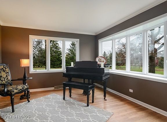 Inverness Cape Cod home sits on almost 2 acres of land with mature trees and a bonus vegetable garden in summer. Walk up to the beautiful new paver front porch and enter through its new front door into the slate floor entry. Oversized dining room has romantic fireplace surrounded by beautiful millwork. First floor music room or study. White kitchen with granite counters and newer appliances, is open to family room with fireplace. French doors lead to the 3 season sun room with skylights opening to outdoor patio which is linked to kitchen providing excellent entertaining space both inside and out. 4 large 2nd floor bedrooms w/wood floors and carpeted office/nursery. Finished basement features yet another fireplace and wide open space perfect for adults and children. Extra large storage space. Great investment or entry home in Inverness.