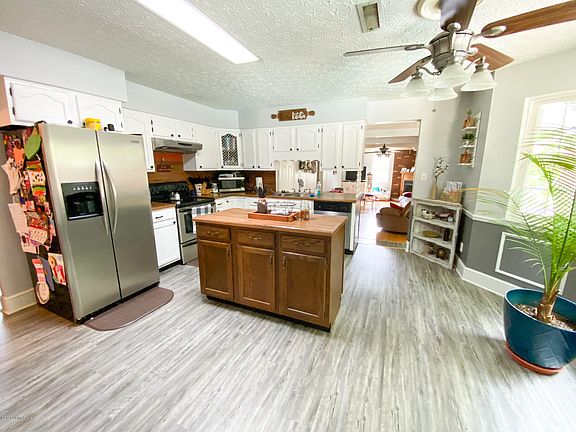 Welcome to this spacious home featuring an inground pool, almost 2 acres, 2 enclosed garages plus 2 additional open garages all sitting on almost 2 acres just outside of Leitchfield city limits. There are multiple living spaces for everyone to spread out and enjoy including the large great room featuring a brick fireplace and built-ins, plus a den with a fireplace, dining room and 2 bonus rooms, one of which is currently being used as a bedroom. This home has updated flooring in the kitchen, dining and den and updated white kitchen cabinetry. Call today for your private tour!