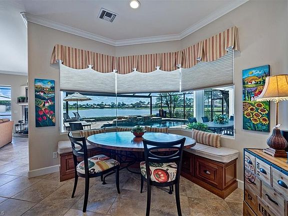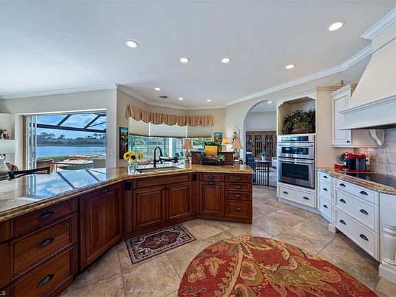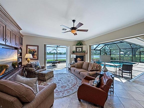 H9665 - Oh what a view! With over 200 feet of lake frontage, the sparkling water views capture your attention from every room. This updated home has 3 bedrooms plus a den and 3 full baths. Large neutral tile flows throughout most of the home. The open and spacious kitchen has high end finishes and walls of glass perfectly blending the natural surroundings. All the sets of sliders disappear behind walls creating a special ambience throughout this home. The den is situated away from the activity but still encompasses the lake views. The owner's suite has 2 California walk-in closets and Luxury finishes in the upscale bath. Custom features and built-ins are found throughout. Topping off a long list of upgrades and special features is the 3 car air conditioned garage with tons of custom cabinetry and ceiling racks for amply storage. The salt water pool and spa have both solar and electric heat. The hand held remote allows you to control the temperature and spa levels while lounging on the paver lanai watching the birds fish and swim through the picture screen. This is the quintessential Florida Lifestyle.