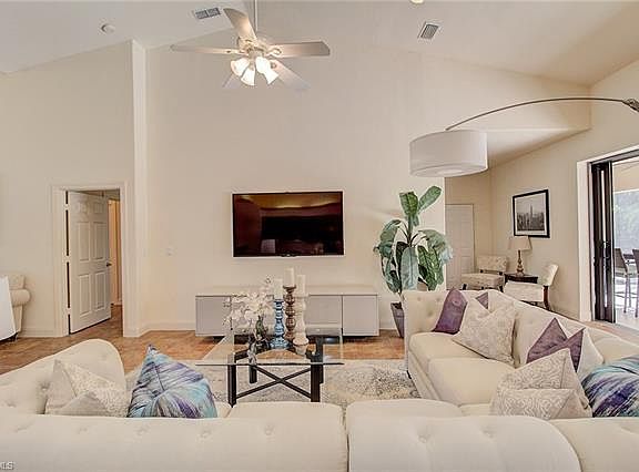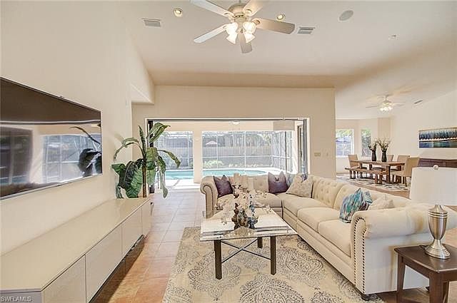 Beautiful light and bright, spacious pool home features open, split bedroom floor plan with 3 bedrooms, 2.5 baths, 3+ car garage and bonus oversized brick paver patio with endless possibilities for outdoor living. Nicely appointed with 42 inch cabinets and granite counter tops in the kitchen, new Samsung stainless steel appliances, surround sound, newer AC (2015), impact Andersen windows and impact sliders. Perfect home for entertaining with soaring ceilings, sky lights, pocket sliders, new summer kitchen, spacious bonus patio, lush landscaping and brick paver walkway around the entire perimeter of the home. Established gated community, with larger lots, low HOA fees and 2-separate entrances giving residents access to community from Livingston Road and US 41. Membership to Imperial Golf Club is optional. Prime North Naples location....close to beaches, shopping and dining. See this home and community today!