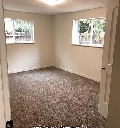 DESCRIPTION Brand New Remodel, be the first to live here! Corvallis Property Management LLC offers this large 3 bedroom, 1.5 bath home for rent. Two car garage with remote control garage door opener, washer/dryer hookups, large living room, dining room, and kitchen featuring a dishwasher. All three of the bedrooms are a very comfortable size. The master bedroom features a sliding glass door on to the back patio. The backyard is fully fenced. Remodel includes: - New flooring throughout - new carpet in bedrooms and laminate hardwood in living room, dining room, kitchen and baths - New kitchen cabinets, countertops, and appliances - New bathroom vanities, fixtures, tub - New doors throughout - New paint - much more! Centrally located off Kings Blvd close to Fred Meyer, Coffee Culture, Winco, and more! Available NOW! Strict NO SMOKING policy. Smoking strictly prohibited inside of unit. No Pets. First month rent and security deposit due at lease signing. One year lease required. (C) 2020 Corvallis Property Management LLC UNIT FEATURES Balcony, deck, patio, Dishwasher, Fenced yard, Fireplace, Garage parking, Heat - electric, Laundry room / hookups, Oven / range, Refrigerator, Walk-in closet Tenant pays utilities