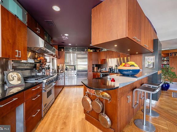 One of the truly exquisite addresses in all of DC! The Northumberland, featured in James Goode's Best Addresses, exhibits class at it's finest. The building is on the National Registry of Historic Places and is the oldest cooperative in DC under continuous management. The lobby, which has received honors for historic preservation, is one of three in DC to achieve protected status. This 2 bedroom, 2 bathroom unit is one of a kind for the building. Renovated in 2002 under the direction of renowned and multiple-award winning architect Robert Cole, each space preserves the character, details and abuncance of natural light from the oversized windows while also incorporating modern amenities that give the feel of a Smithsonian exhibit with the highest quality workmanship. The gourmet kitchen is laid out perfectly for entertaining and conversing while offering everything a chef would need with Viking, Miele and Sub Zero appliances. Originally a 3 bedroom unit, the owners combined two of the bedrooms into one to create a primary suite with a luxury hotel-quality attached workspace. The apartment can be converted back to a 3 bedroom with relative ease. The unit also features central AC and an in-unit washer and dryer to round out the modern amenities which are not common for units in this Pre-War building. Building amenities include a recently renovated spectacular roof deck with 360 degree views of the entire city, 24 hour concierge, a guest suite that can be reserved by owners for their guests, a storage room, shared laundry room with brand new oversized commercial laundry units and owners can have their trash collected directly from their unit door 6 days a week.