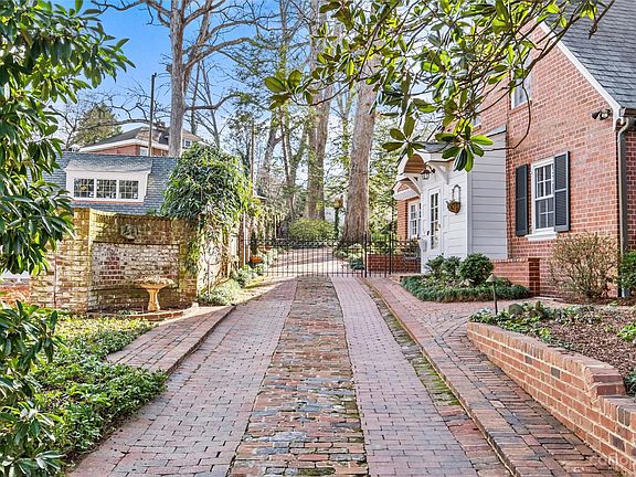 Welcome home to 2039 Queens Road East. Situated on one of Myers Park's most desirable and quiet streets, this classic cape cod brick home on a deep half acre lot boasts tall ceilings, hardwood floors and an abundance of natural light. The main level features an updated primary suite with marble tile, dual vanities and ample storage. Updated kitchen with custom cabinetry opens to the large family sunroom. The back of the house is adorned with windows connecting you to the beautifully designed and completely private terraced garden. It includes water features, and a versatile back building that includes a greenhouse and an office above. Sitting up and away from the street, this home offers traditional style, timeless beauty and a private retreat within the city.