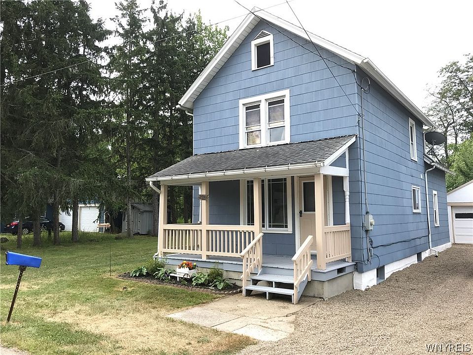 Wonderful starter home, 3 large bedrooms & 2 full baths (1st floor and 2nd floor) w/ plenty of storage in the 1/2 basement, shed or 2 car detached garage - oversized yard, hardwood floors and formal dining room with glass pane doors (can also be used as an office), Open front porch. Large 15x13 kitchen with endless possibilities. Many updates over the years including roof in 2011, high-efficiency furnace w/ central air & humidifier 2006, stamped concrete patio in 2007, all vinyl replacement windows replaced between 2001 - 2010, all new electric in 2001 - blown-in insulation in 2004 makes for really low heating bills. Refinished hardwood floors in 2019. This is not a drive by, must see inside. Radon test already done and available. Conveniently located.