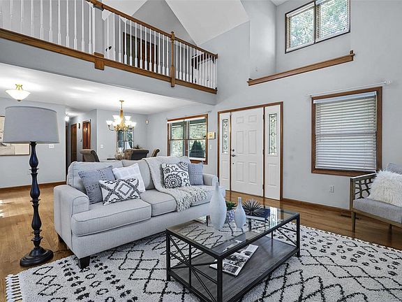 This incredible 1.5 story has it all! With 4 bedrooms, 3.5 baths,& multiple common areas, there’s plenty of space to relax, entertain, & enjoy all it has to offer. Admire soaring vaulted ceilings, lofted rec room overlooking the living area, & gleaming hardwood floors upon entry. The living space features a stunning gas fireplace & wood trim that frames the windows and doors beautifully. Head through the dining area to the kitchen & see bright white custom cabinetry & granite countertops. Enjoy seating at the breakfast bar or by the bay window looking out into the tranquil backyard. Pass through the den/potential office space to the ML laundry room & master suite. The master bedroom features large windows, generously sized walk-in closet, & full bath. Upstairs, hang out in the loft or venture down the hall to the bedrooms, each boasting plush carpeting & ample closet space sharing a full bath. Full finished basement, backyard patio,& attached 2 car garage, what more could you ask for?!
