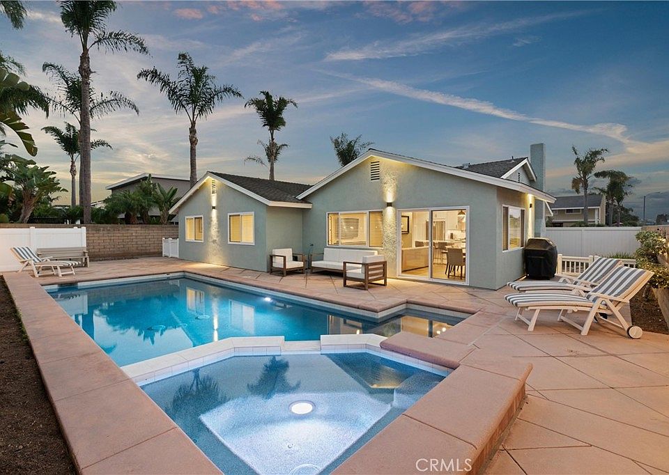 Welcome to one of Huntington Beach’s most loved and sought-after family neighborhoods, the Moffett Tract. 20392 Drew Circle is located on a quiet interior cul-de-sac on a spacious corner lot, with RV potential, and no neighbors on one side. This beautifully remodeled single-story home offers both privacy and a strong sense of community. With nearly 1700 sq ft of open and inviting living space, the home features 4 bedrooms and 2 bathrooms, thoughtfully reimagined with modern, clean finishes and functional improvements throughout. The open and bright kitchen showcases shaker cabinetry, quartz countertops, stainless appliances, and an island layout perfect for entertaining and everyday living. The great room flows seamlessly to the dining and living spaces, all enhanced with large dual pane windows, recessed lighting, ceiling fans, and newer interior and exterior paint. The central furnace has been relocated to the attic, maximizing interior space and improving comfort. Both bathrooms are fully remodeled with modern finishes and spa-like appeal. The resort-style backyard is truly the centerpiece of the home—complete with a heated in-ground pool and spa, multiple lounging and dining areas, and ample room to enjoy sunrise coffee or sunset evenings under the coastal sky. The yard offers excellent privacy and year-round usability. The landscaping is supported by automatic irrigation for easy maintenance. Additional features include an attached 2-car garage, expanded driveway, and potential RV/boat parking options. Situated on an interior street with no cut-through traffic, the home offers a calm and peaceful feel while still being just minutes from everything Huntington Beach is known for—bike to the beach, Pacific City, Downtown HB, parks, and local dining. Families love the walkability to Moffett Elementary and Moffett Park, neighborhood block gatherings, and the friendly community feel. This home is truly move-in ready with zero initial improvement costs—every major system and aesthetic upgrade has already been completed. Simply settle in and start enjoying your perfect L3: Location, Luxury, & Lifestyle!