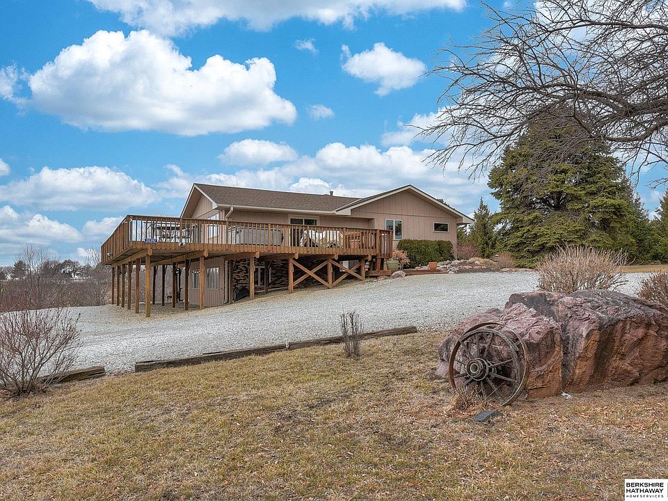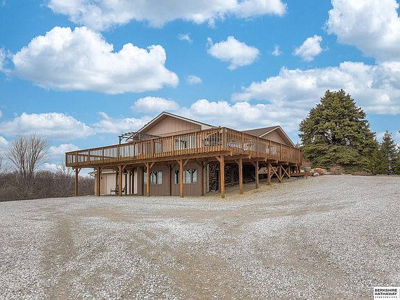 Amazing 10 acre home just minutes from Omaha!! Properties like this do not come along often. This beautiful home sits atop a hill with a large wrap around deck to capture the 180 degree views! There is a large 1,800sqft outbuilding w/power & water plus a 600sqft attached lean to, both are ideal for recreational equipment storage, workshop, farming, etc. Fully finished lower level with huge rec room that offers a bar/kitchenette, wood burning fireplace and two bonus/flex rooms (one with a larger window). The property offers a natural shooting range for the outdoor enthusiast as well as many acres of farmable land and/or pasture for livestock or horses. All this and so much more!