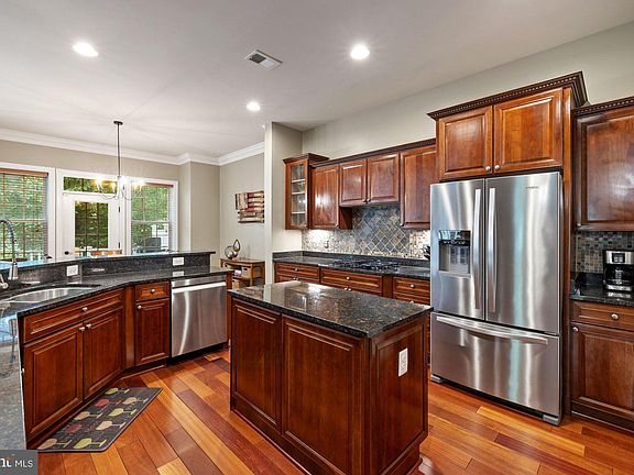 Welcome to this beautifully maintained Villa Home nestled on a quiet street in the sought after Lowes Island community. Situated on a 0.11-acre lot backing to mature trees, this spacious stone and brick front residence offers 4 bedrooms, 3.5 bathrooms, and 4,364 square feet of finished living space across three thoughtfully designed levels. Step inside to a light filled main level featuring hardwood floors, recessed lighting, and elegant custom built ins. The open concept living and dining areas are anchored by a cozy fireplace and framed by large windows that bring the outdoors in. Just off the entry, a private office with French doors and a walk-in closet provides the perfect work from home space. At the heart of the home, the updated kitchen includes a generous island with granite countertops, stainless steel appliances, and a sunny breakfast nook. A door leads to a private deck ideal for relaxing or entertaining with peaceful wooded views. Upstairs, the expansive primary suite boasts large walk-in closet and en-suite bath with soaking tub. Two additional bedrooms, a full hall bath, and a convenient laundry room complete the upper level. The fully finished walkout lower level offers a warm and inviting recreation room, full bath, and space for a home gym, media area, or guest suite. Enjoy the outdoors from the backyard deck, front porch, and well-kept backyard surrounded by mature trees for added privacy. A two-car garage and generous driveway provide ample parking. Experience all the amenities of Lowes Island/Cascades living, including pools, tennis courts, fitness centers, and walking trails, with easy access to Route 7, Reston Town Center, One Loudoun, Trump National Golf Club, and local parks. Lowes Island/Seneca Ridge/Dominion Pyramid.
