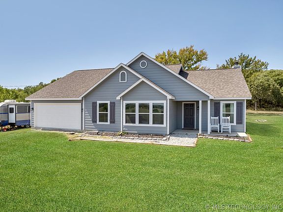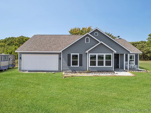 Are you ready to escape city life to your very own 40 acre farmhouse? Built in 2022 this home features 3 bedrooms 2 full baths, an office, and a beautiful open concept floor plan. Cozy up by the beautiful fireplace or go fishing in one of the 2 ponds. This home will not disappoint you. Just a few minutes from Dripping Springs Lake and Okmulgee Lake. Home has an RV hookup... did I mention a chicken coop and nice shed??