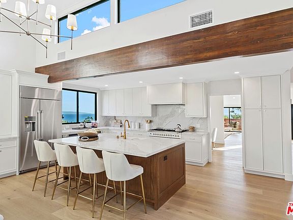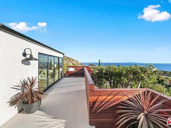 Brand new and completely turnkey in Big Rock! Renovated from the studs up using only the finest materials, this modern single-level home offers contemporary living in eastern Malibu's most desirable neighborhood with breathtaking views of the ocean, Palos Verdes, Catalina, and Queen's Necklace. Just completed in the Fall of 2023, the home was beautifully designed with luxury finishes including White Oak floors, Milgard doors and windows, and warm wood tones throughout. Upon entry, the open living room welcomes you with soaring ceilings, large picture windows, a fireplace, and sliding glass doors that lead out to an ocean view patio with built-in Ipe seating. The living area seamlessly flows into a dining area, perfect for hosting gatherings both large and small. The well-appointed gourmet kitchen is a chef's delight, fully equipped with custom cabinetry, quartz countertops, a huge center island with a breakfast bar, and luxury appliances. Embodying open-concept living, the kitchen opens to a large family room offering a marble fireplace and beautiful natural light through a plethora of windows and skylights. Outside, the backyard is a peaceful, park-like oasis with a sprawling yard, mature trees, ocean view seating area, and expansive patio perfect for entertaining and al fresco dining. The primary suite is light and bright with a large private patio and spa-like bathroom offering dual vanities, a wet-room with a shower, and a soaking tub. There are two additional bedrooms with a jack and jill bathroom in addition to an office, laundry room, and 2-car garage. The mechanical systems are entirely new including the roof, plumbing, HVAC, and electrical circuits. This coastal retreat is perfectly located minutes from Pacific Coast Highway and moments to Pacific Palisades, Santa Monica, Malibu, sandy beaches, and incredible hiking trails. This is a rare opportunity to be the first owner of a brand new enclave in one of Malibu's most desirable neighborhoods, ready now to be enjoyed!
