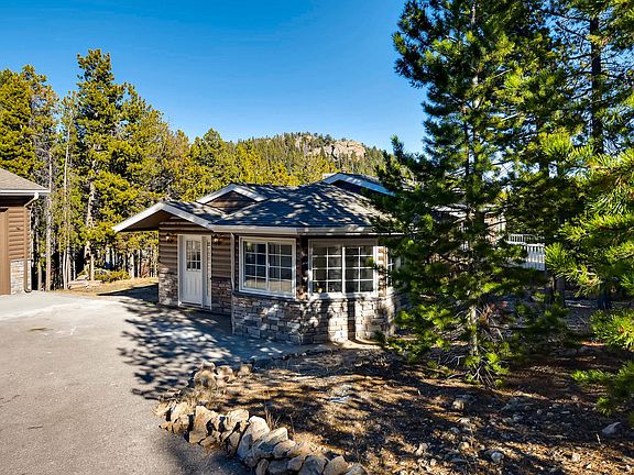 Don't miss out on this charming mountain home, nestled amongst mature foliage, located in Hilldale Pines. It's the perfect escape from busy city life, while still within arm's reach. Almost 2.5 Acres of nearly flat and useable land to play or simply enjoy the beauty of it's untouched nature. Exquisitely updated; simply move in without having to bring down the hammer. The open floor plan boasts beautiful hardwood flooring and an upgraded kitchen with granite countertops and stainless steel appliances. Start your mornings by soaking in fresh mountain air from your spacious back deck with panoramic views. Featuring 3 bedrooms, 2 baths, private den and office/craftroom with a finished walk-out basement. The Master Bedroom is conveniently located in the basement, providing utmost privacy for you to unwind after a long day. The insulated oversized garage is built for any enthusiast with 4 bays, and extra room for all your outdoor toys and storage. Enjoy the finest of Colorado Living in this Cozy Mountain Home! The home is rated 4 person/2 Bed Septic.